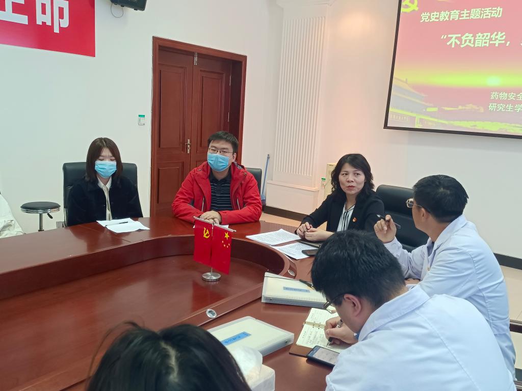 药物安全性评价中心直属党支部书记吴修红在发言中希望师生党员要担负起新时代赋予大家的新使命,锐意进取、不懈努力,以昂扬的斗志迎接中国共产党百年华诞。