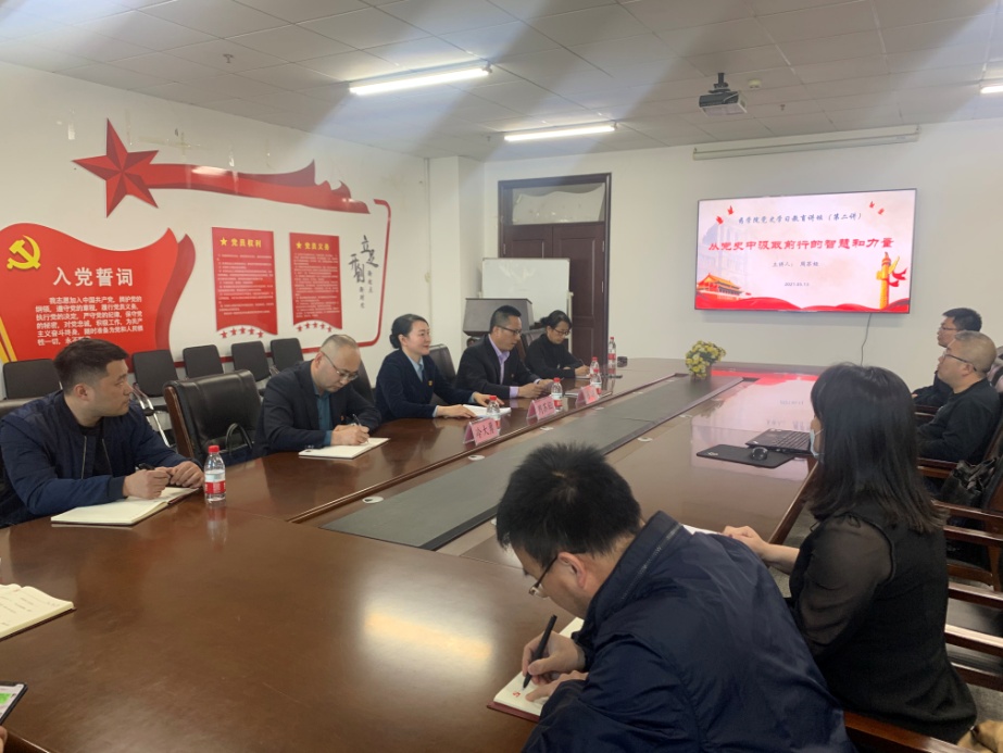 5月13日,药学院党史学习教育讲坛举办第二讲。马克思主义学院院长周苏娅教授应邀作题为《从党史中汲取前行的智慧和力量》的讲座。学院党委副书记、院长杨波主持讲坛。本次讲坛采取线上线下结合的方式进行,药学院教工党员线下参会,普通教师及学生党员通过线上平台参加学习。