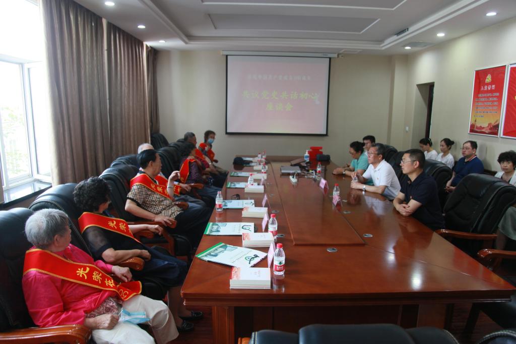 6月28日上午,为迎接中国共产党建党100周年,附属第一医院党委举行“共议党史 共话初心”座谈会,并为党龄50年的老党员代表颁发“光荣在党50年”纪念章。院党委书记李建民、院长李全与医院7名老党员代表,以及相关职能部门负责人参加活动。