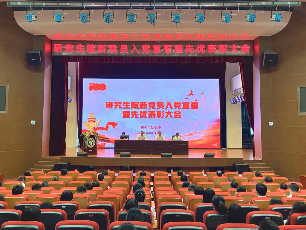 6月28日,研究生院在综合楼11楼主会场召开新党员入党宣誓暨“先优”表彰大会。院党委书记运锋,院长、院党委副书记张洋出席会议,院党委副书记金阳主持会议。200余名研究生党员及教师代表参加大会。