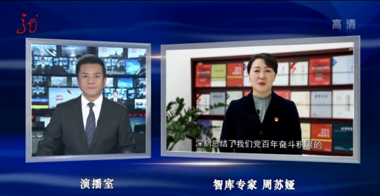 11月19日,黑龙江省新闻联播连线采访学院院长周苏娅,就党的十九届六中全会精神进行解读。