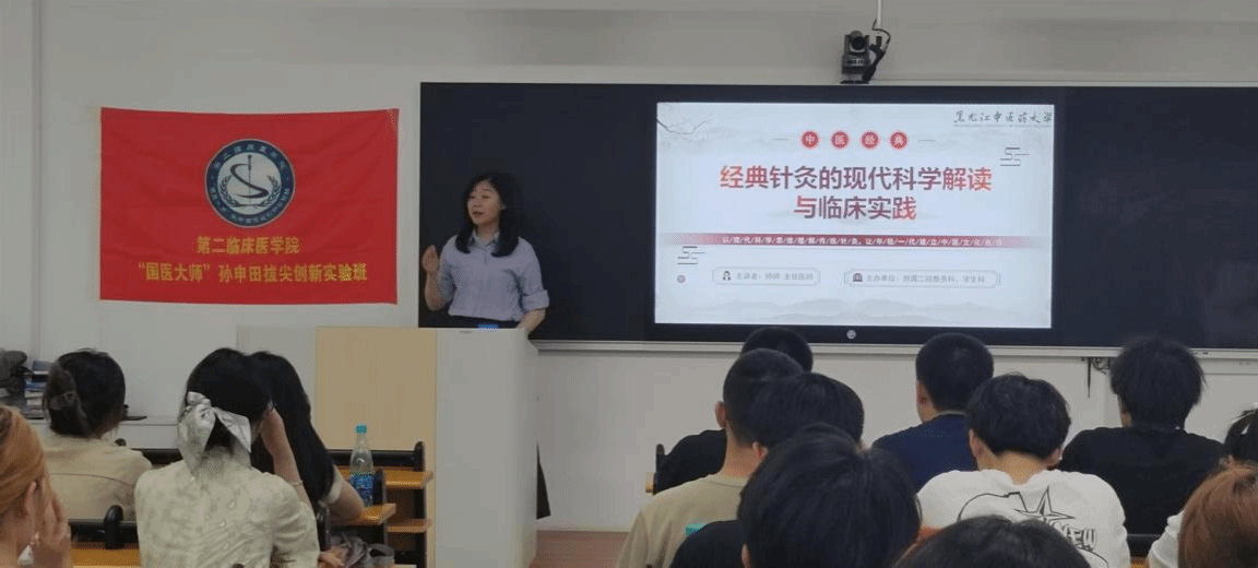 附属第二医院老年病二科负责人、主任医师师帅老师为“国医大师”孙申田拔尖创新实验班作“经典针灸的现代科学解读与临床实践”专题讲座。