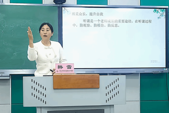 韩雪以《向下扎根,向上生长》为题,生动阐述了如何打磨一堂好课、构建良性师生互动,并实现教学相长的成长路径。