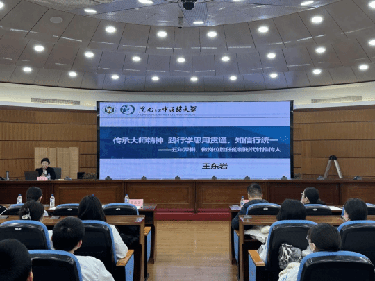 王东岩教授以“传承大师精神、践行学思用贯通、知信行统一”为题作辅导讲座。她通过播放石学敏院士事迹视频,并结合学院学子高空救人的真实善举,引导学生汲取榜样力量,树立崇学向善、实干担当的成长信念。讲座聚焦针灸学科的传承与创新,强调“传承为基、创新为辅”的培养理念,结合影像资料回顾孙申田教授的医路历程与黑龙江针灸发展脉络,引领师生感受大师严谨笃实的治学风范与针灸学科的深厚底蕴。同时系统梳理了针灸推拿专业一至四年级的核心课程体系,明确各阶段学习重点,倡导“理论结合临床、中西医融会贯通”的学习路径。并重申实验班的设立初衷,表示学院将持续推进务实培养,护航学子在传承中创新,成长为高素质针灸拔尖人才。
