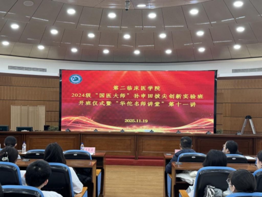 为深化学风建设,强化学生临床思维,传承“国医大师”孙申田教授的学术精神,近日,第二临床医学院在求真讲堂隆重举行2024级“国医大师”孙申田拔尖创新实验班开班仪式暨“华佗名师讲堂”第十一讲。院党委副书记、副院长冷德生,副院长王东岩教授,实验班全体学员及学生代表参加活动。