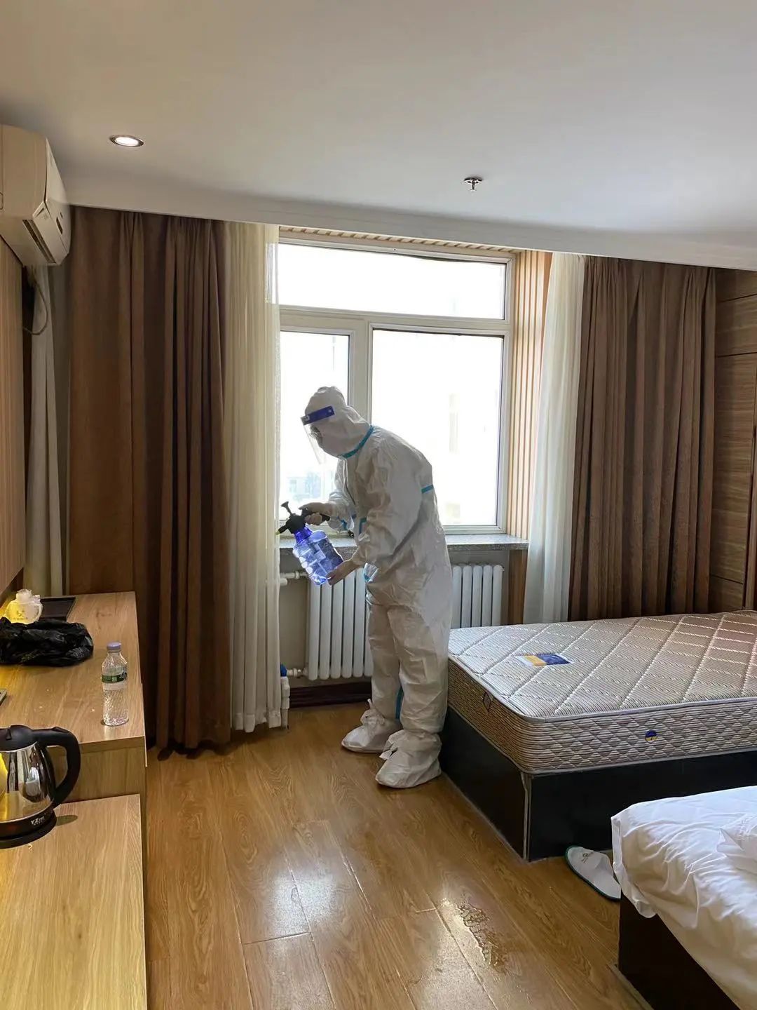 时间紧任务重,当天下午4点医疗队接到指令,大家马上行动,简单收拾好行李后,于当晚7点立即赶到了隔离宾馆——和兴路春天宾馆,迅速进入工作状态。在隔离点74个房间,第一批共接收了80名密接人员。担当这次任务的5名医护大部分是“90”后,队员们深知,需要负责与新冠肺炎确诊的密切接触者监测和护理,存在很大风险,但是他们并没有因此退缩。