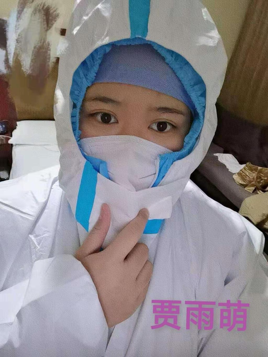 1997年出生的贾雨萌是这5个医疗队员中年龄最小的,在父母的眼中她可能还是个孩子,但在这次任务中我们看到的却是一个有担当的医务工作者。作为第一个面对密接者的人,她没有胆怯,更没有因为年龄小就退缩,相反,她表现出了超越这个年纪具有的勇气与乐观。