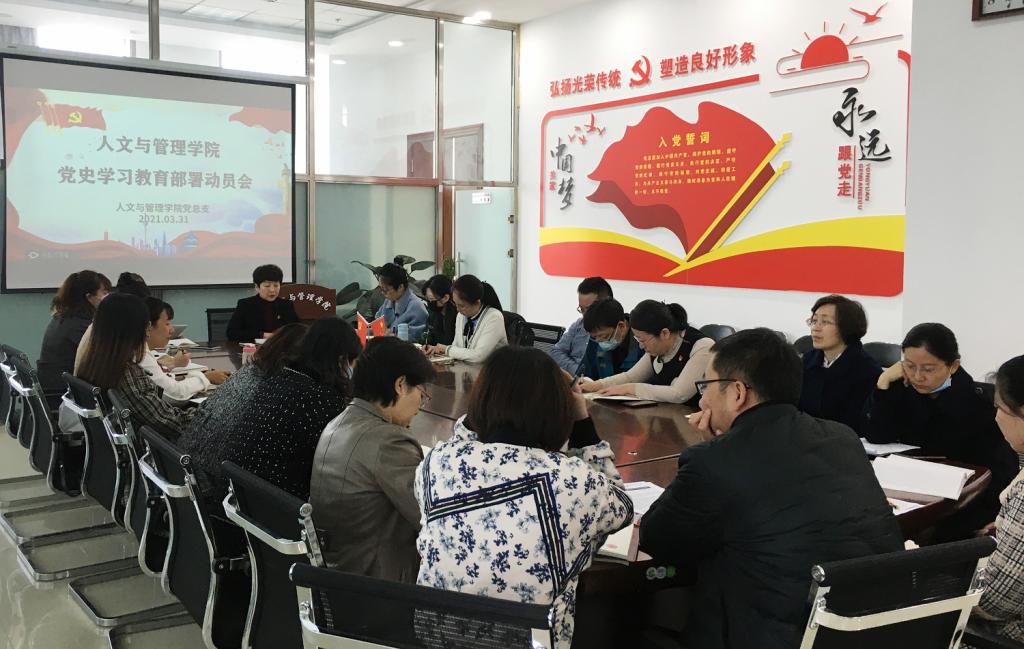 3月31日上午,人文与管理学院党总支召开党史学习教育部署动员会。学院教师党员、党外教师代表及学生党员代表参加会议,院党总支书记李宝琴主持会议。