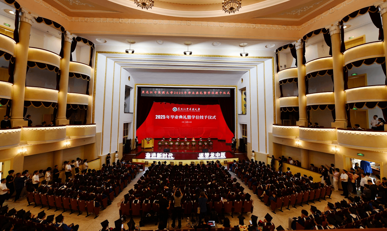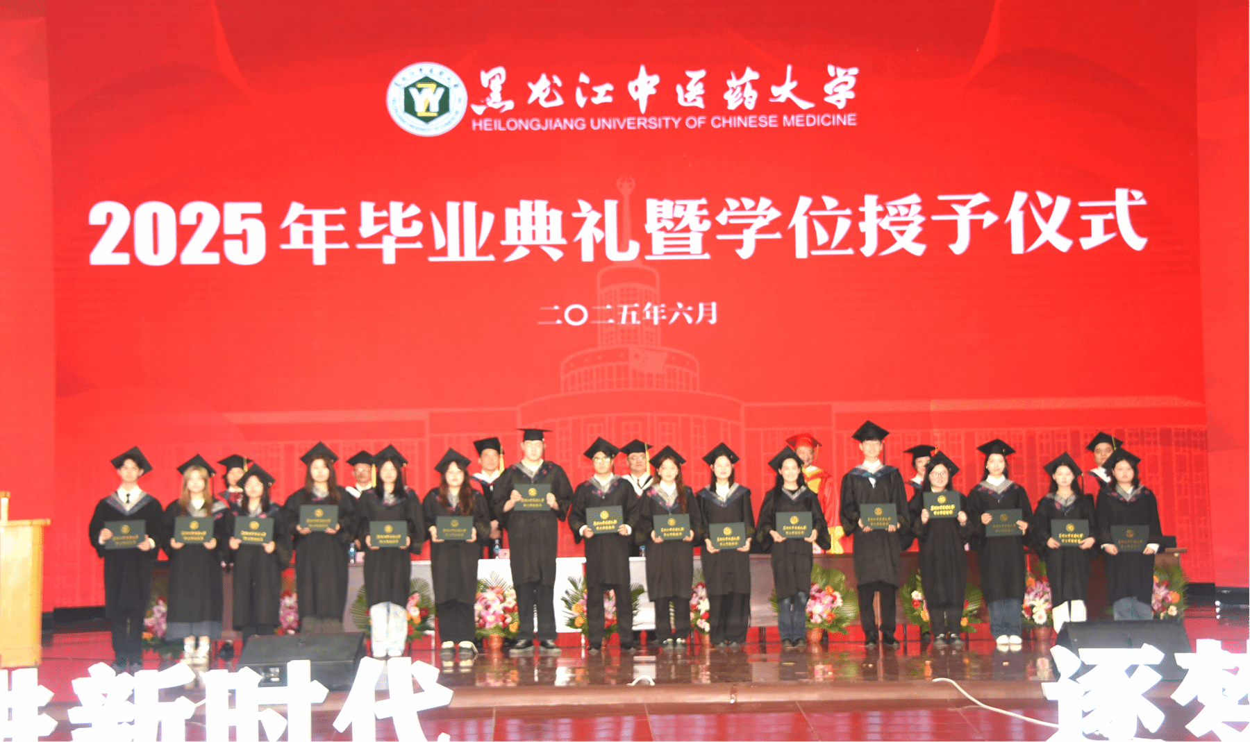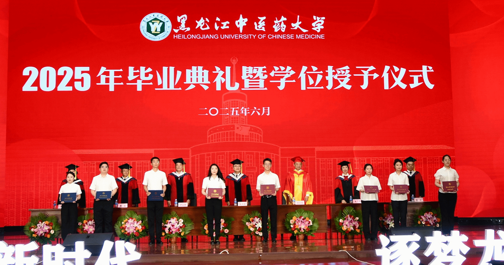 6月19日下午,黑龙江中医药大学2025年毕业典礼暨学位授予仪式在华体会平台(中国)主楼礼堂隆重举行。4811名毕业生身着学位服、头戴学位帽,迎来了自己人生中的这一重要时刻。华体会平台(中国)学位评定委员会委员、领导班子成员赵炜明、郭宏伟、尹占军、乔广霞、张浩、张洋、吴修红身着庄重的导师服出席毕业典礼暨学位授予仪式。华体会平台(中国)学位评定委员会主席、博士生导师、校长郭宏伟教授讲话,副校长张洋主持典礼。