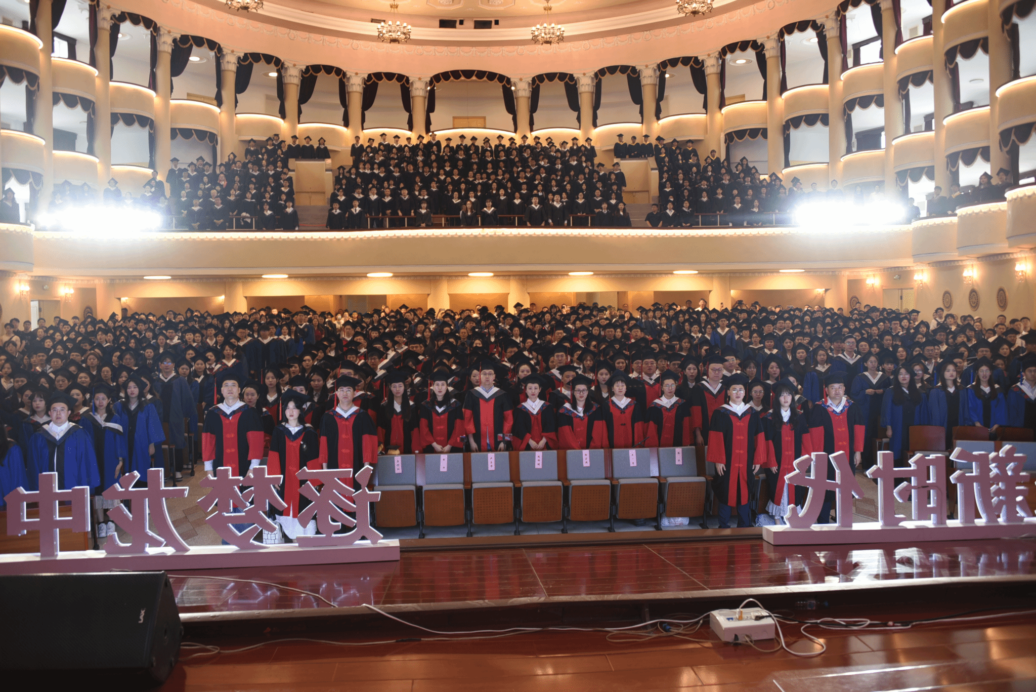 典礼前,学生代表表演暖场节目,演唱《干杯》《像你这样的朋友》《离别开出花》《启程》等歌曲,共同祝愿母校桃李芬芳,英才辈出,祝愿所有毕业生,前程似锦,一路生花。