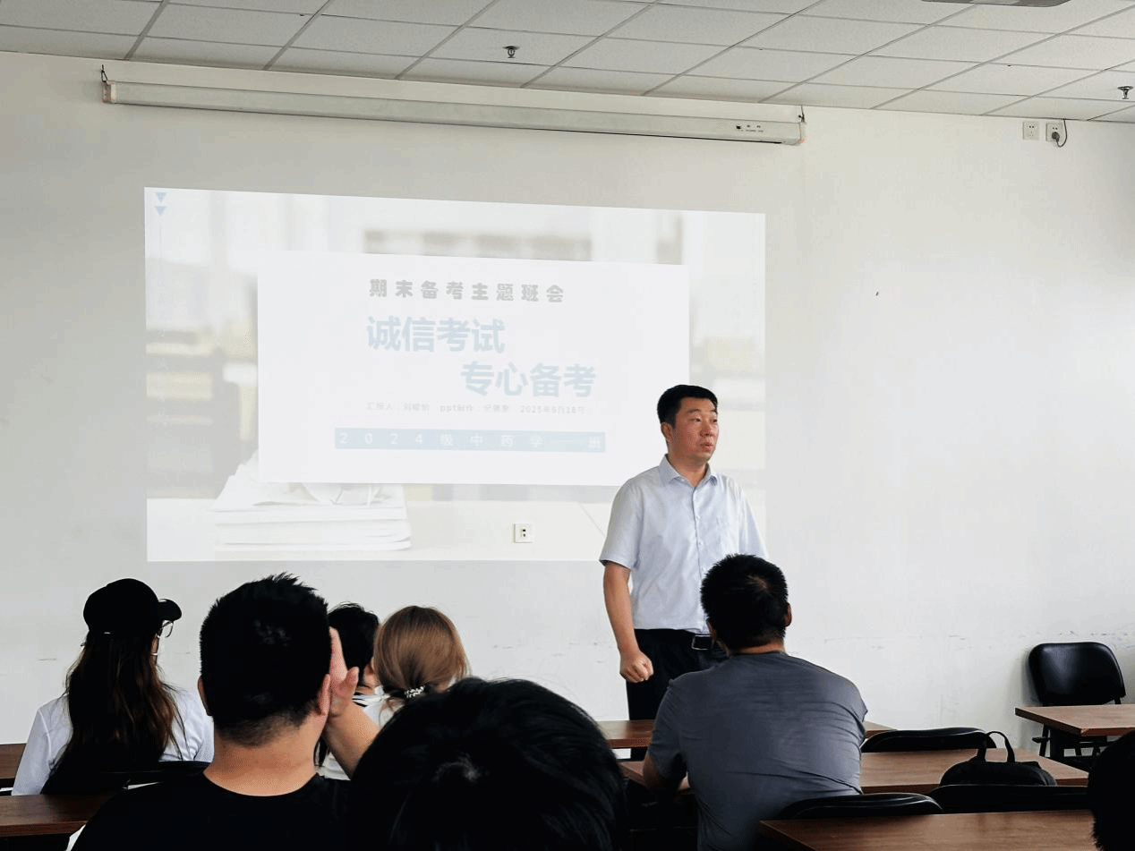 学生工作部部长王贺为2024级中药学专业一班开展“诚信考试,专心备考”期末备考主题班会