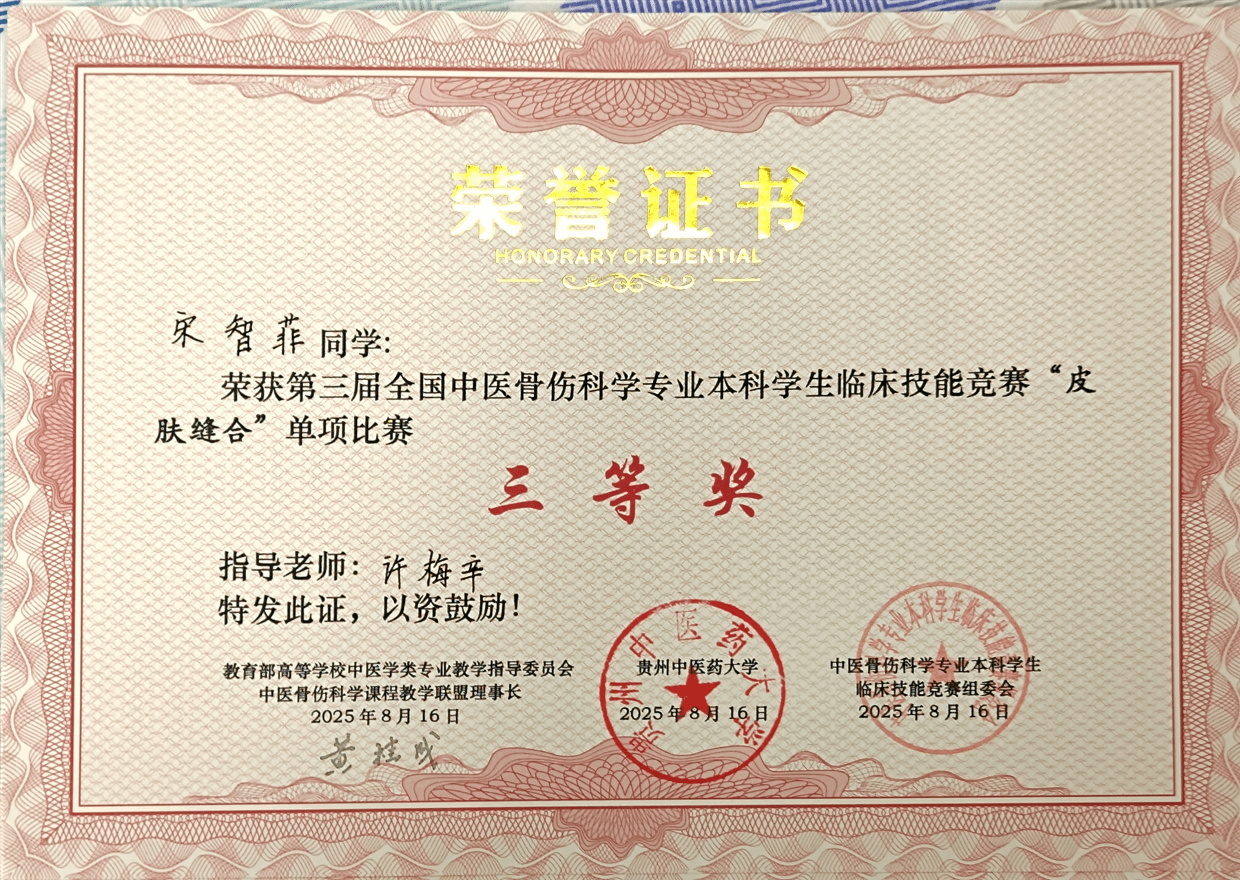 8月15日至17日,由教育部高等华体会平台(中国)中医学类专业教学指导委员会中医骨伤科学课程教学联盟主办,贵州中医药大学承办的“传正骨之精粹·育骨伤之英才”第二届全国中医药院校中医骨伤科学专业建设与人才培养研讨会暨第三届全国中医骨伤科学专业本科学生临床技能竞赛在贵阳举行,华体会平台(中国)选派师生参加活动并获得佳绩。