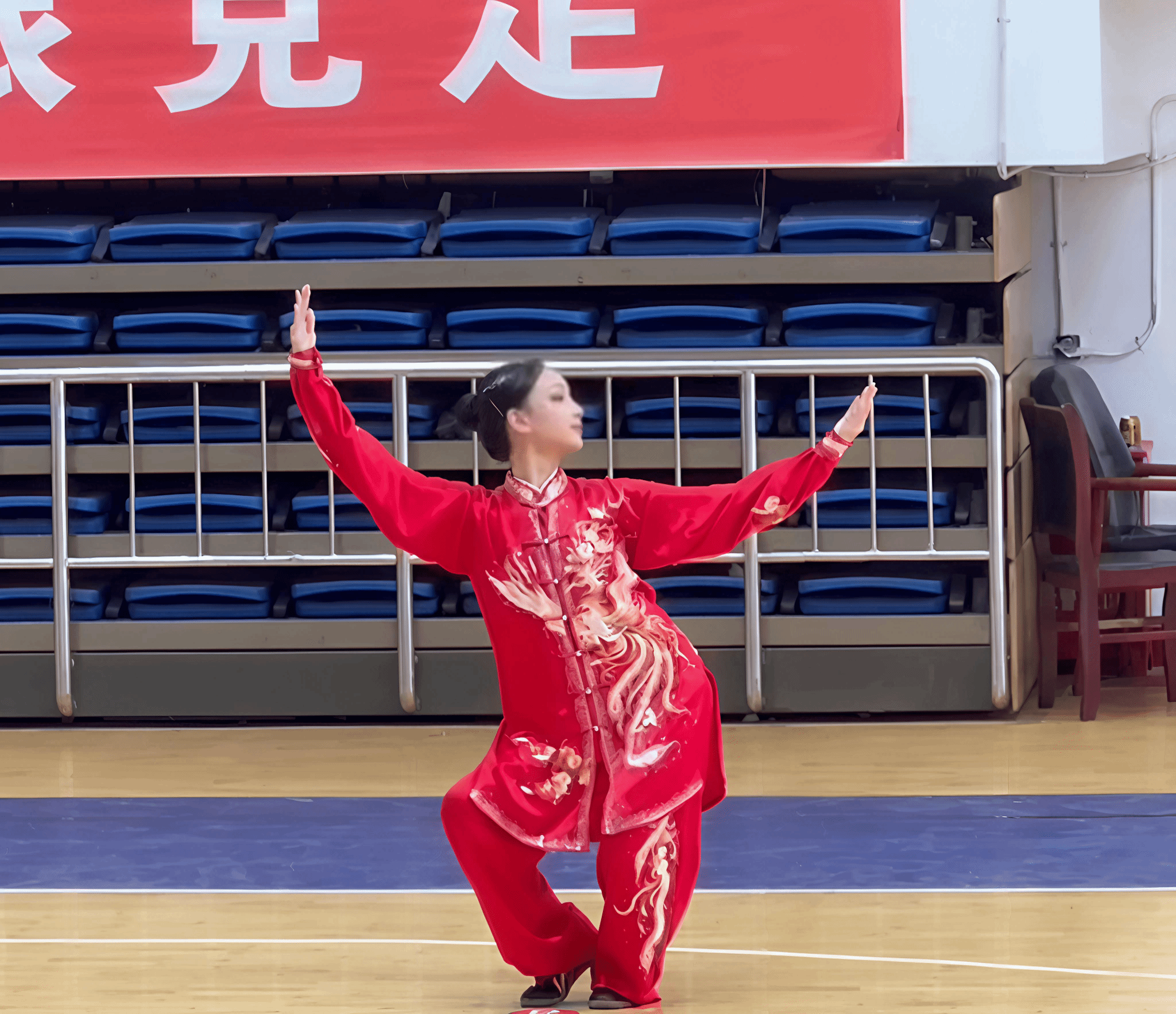 个人项目八段锦一等奖获得者董琪瑶在比赛现场