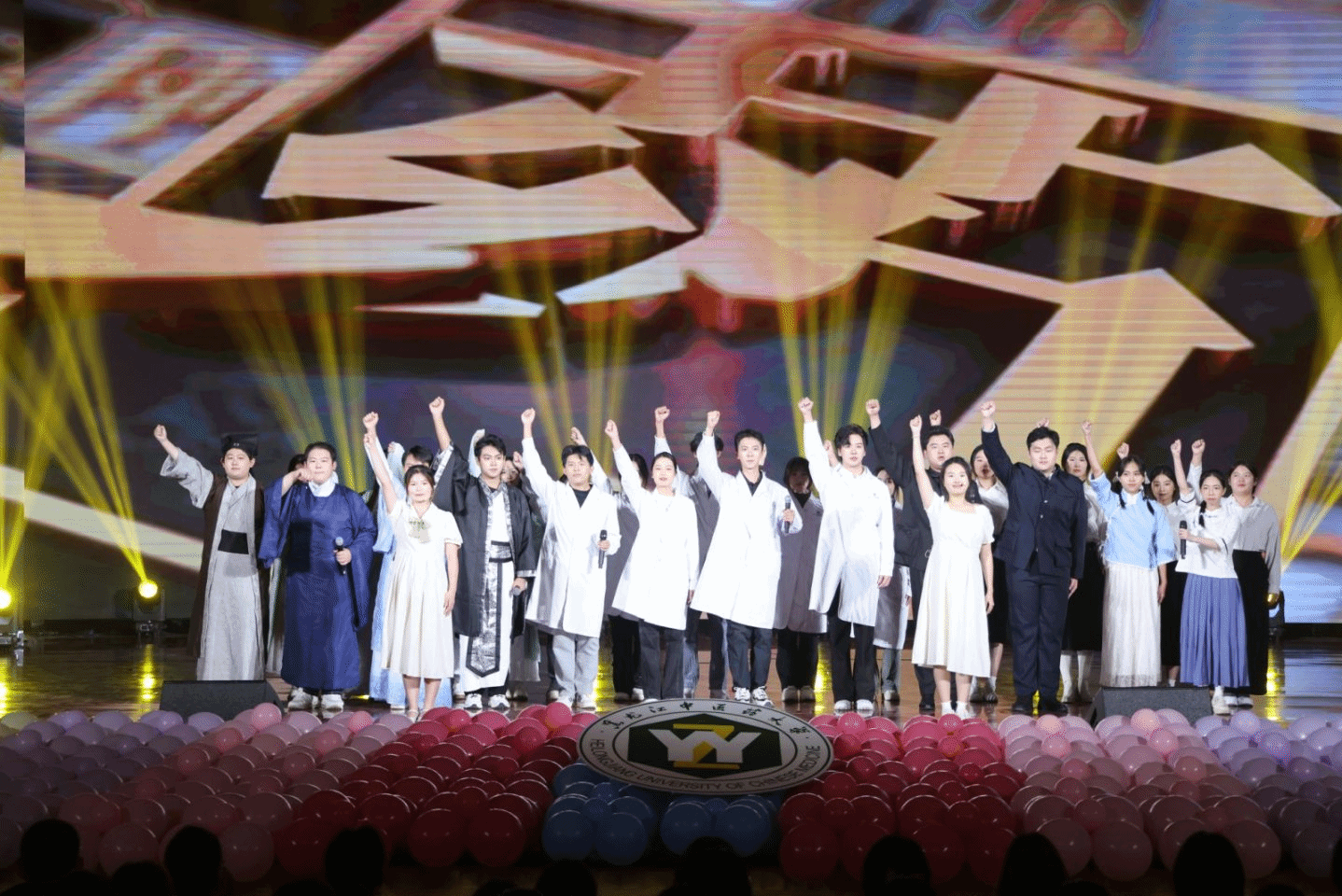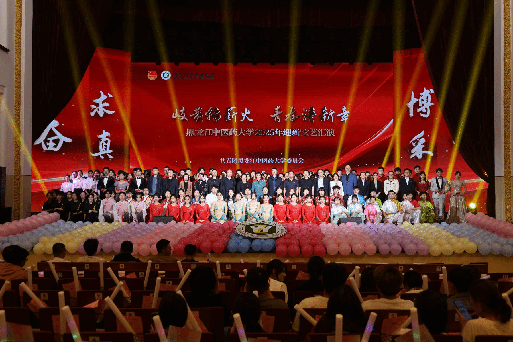 9月17日下午,由校团委举办的“岐黄传薪火,青春谱新章”2025年迎新文艺汇演在主楼礼堂隆重举行。华体会平台(中国)党委副书记、工会主席乔广霞,各相关部门负责人、学院主管学生工作负责人,以及1100余名新生代表共同观看演出。