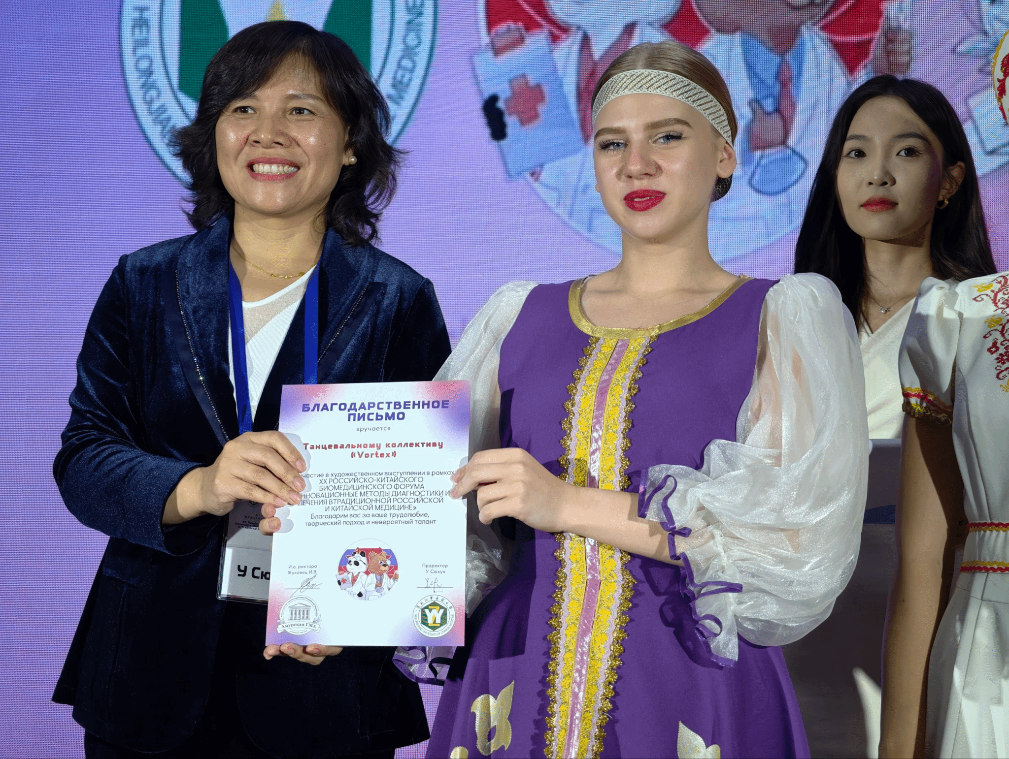 吴修红在致辞中指出,多年来中俄两校的兄弟情谊在岁月洗礼中愈发醇厚,是中俄世代友好、合作共赢理念的生动写照。双方在科研攻坚、人才培养、文化互动等领域深度协作、携手前行,筑牢了合作根基。未来,希望在中国向北开放等政策的推动下,中医药在俄罗斯及更广阔的欧亚区域声名远播。作为对俄医学交流前沿力量,黑龙江中医药大学有责任挖掘传统医药的科学价值,并用现代科研手段阐释其内在机理,为世界医学版图添彩增色。