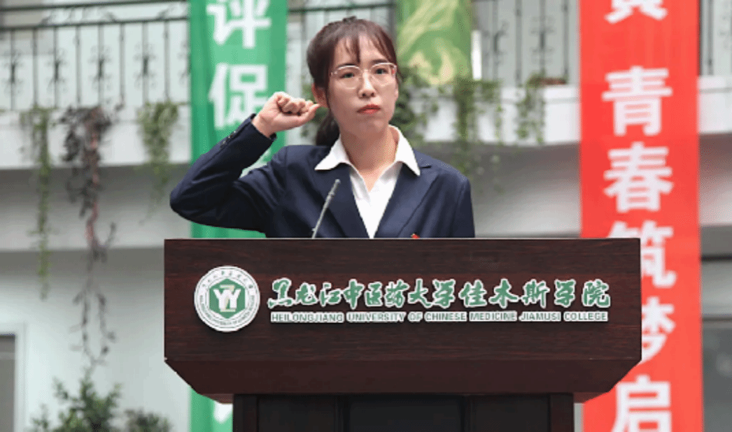 优秀辅导员王婧姣带领全体新生朗诵《医学生宣誓》。