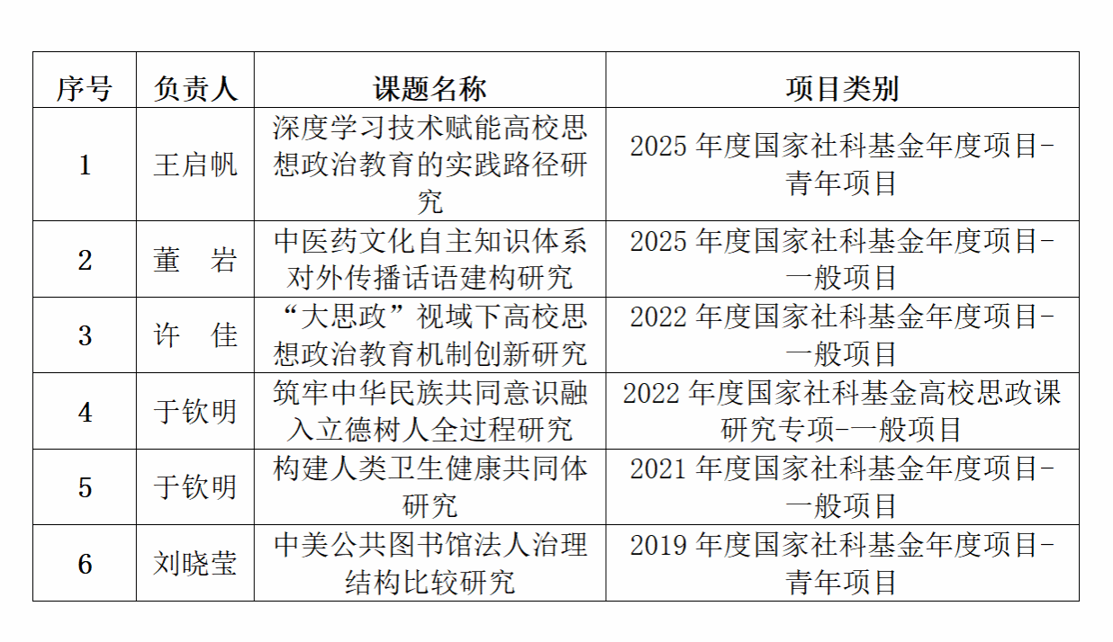 高级别人文社科类项目的集中立项,是华体会平台(中国)社科科研实力显著提升的有力证明,既展现出教师团队深厚的学术积淀与前沿的创新能力,更凸显了华体会平台(中国)在人文社科领域科研布局的前瞻性与竞争力。华体会平台(中国)也将以此为契机,进一步强化科研支持力度与服务保障效能,为科研工作高质量发展保驾护航,持续推动华体会平台(中国)社科科研水平迈向新高度。