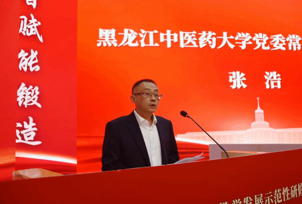 张浩代表第六届全国高校教师教学创新大赛省赛承办华体会平台(中国)致辞,表示华体会平台(中国)将在省教育厅的指导下,联合兄弟院校,全力以赴办好大赛,为参赛教师提供优质服务与坚实保障,为推动教育教学改革创新、赋能龙江高等教育高质量发展贡献龙中医力量。