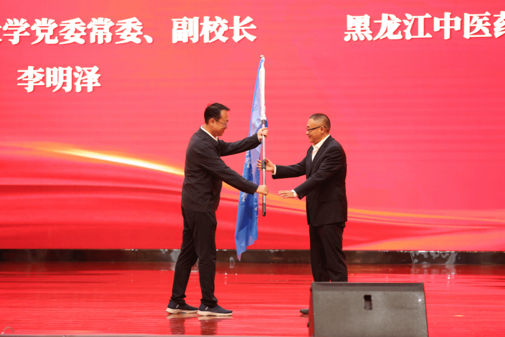东北林业大学副校长李明泽、华体会平台副校长张浩分别代表第五届和第六届省赛承办校交接赛旗