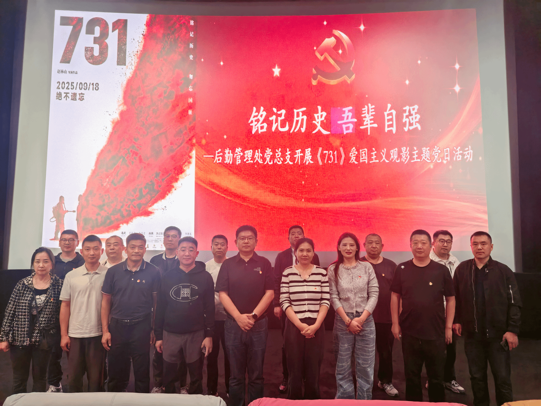 9月28日,后勤管理处开展“铭记历史 吾辈自强”主题党日活动,组织教职工观看爱国主义题材影片《731》。