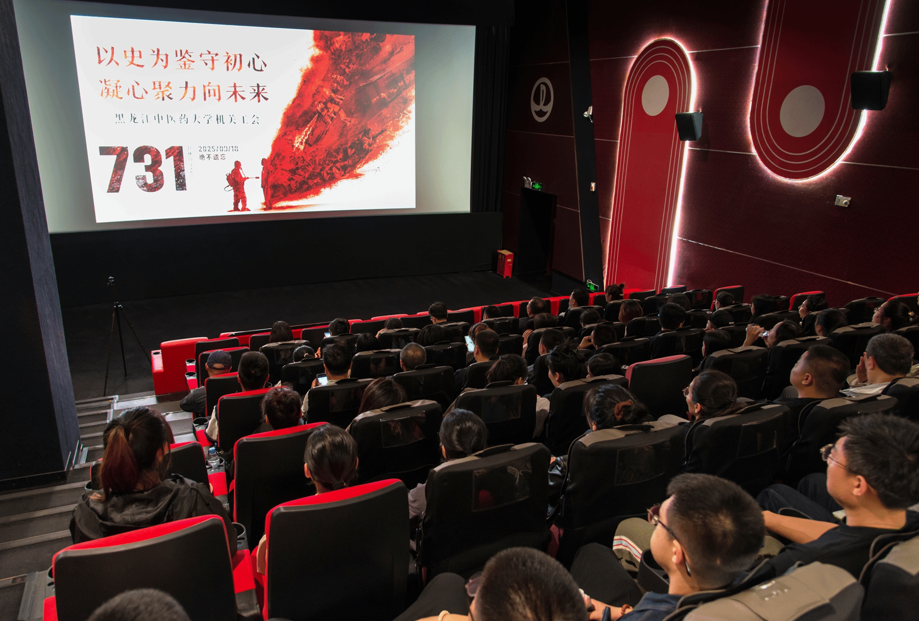 9月19日,佳木斯学院组织全体教职工观看爱国主义题材影片《731》。