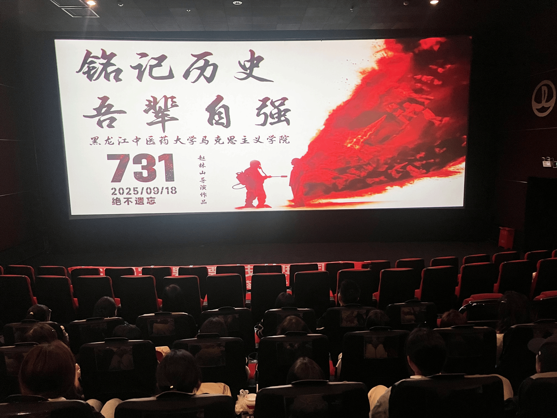 9月25日,马克思主义学院开展“铭记历史 吾辈自强”主题活动,组织师生观看爱国主义题材影片《731》。