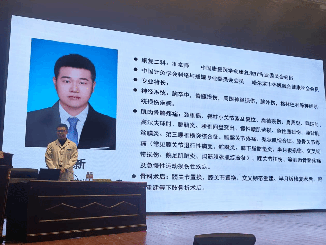 黑龙江中医药大学附属第一医院裴宇新作题为《颈椎推拿手法》的专题讲座