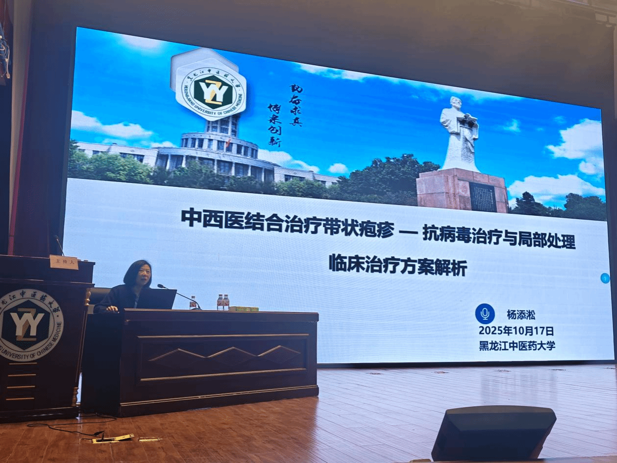 黑龙江中医药大学附属第一医院杨添淞作题为《中西医结合治疗带状疱疹-抗病毒治疗与局部处理临床治疗方案解析》的专题讲座