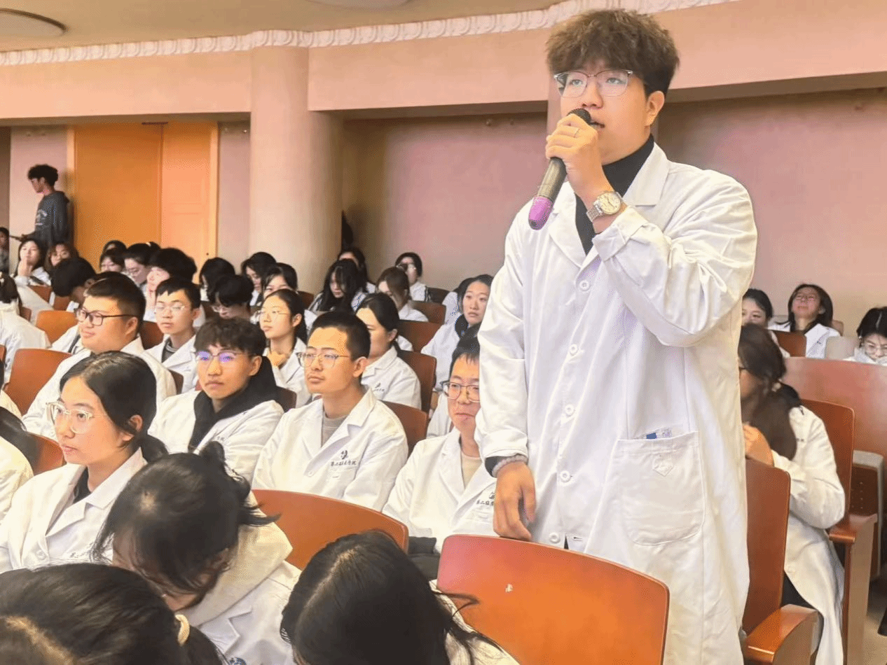 在提问环节,新生就专业认知、学业规划及前沿发展等话题与专家面对面交流,问题涵盖针灸临床应用、康复技术发展、影像AI融合等前沿领域,专家们亦倾囊相授,以精辟解答点燃思维火花,有效激发了学生的主体意识。
