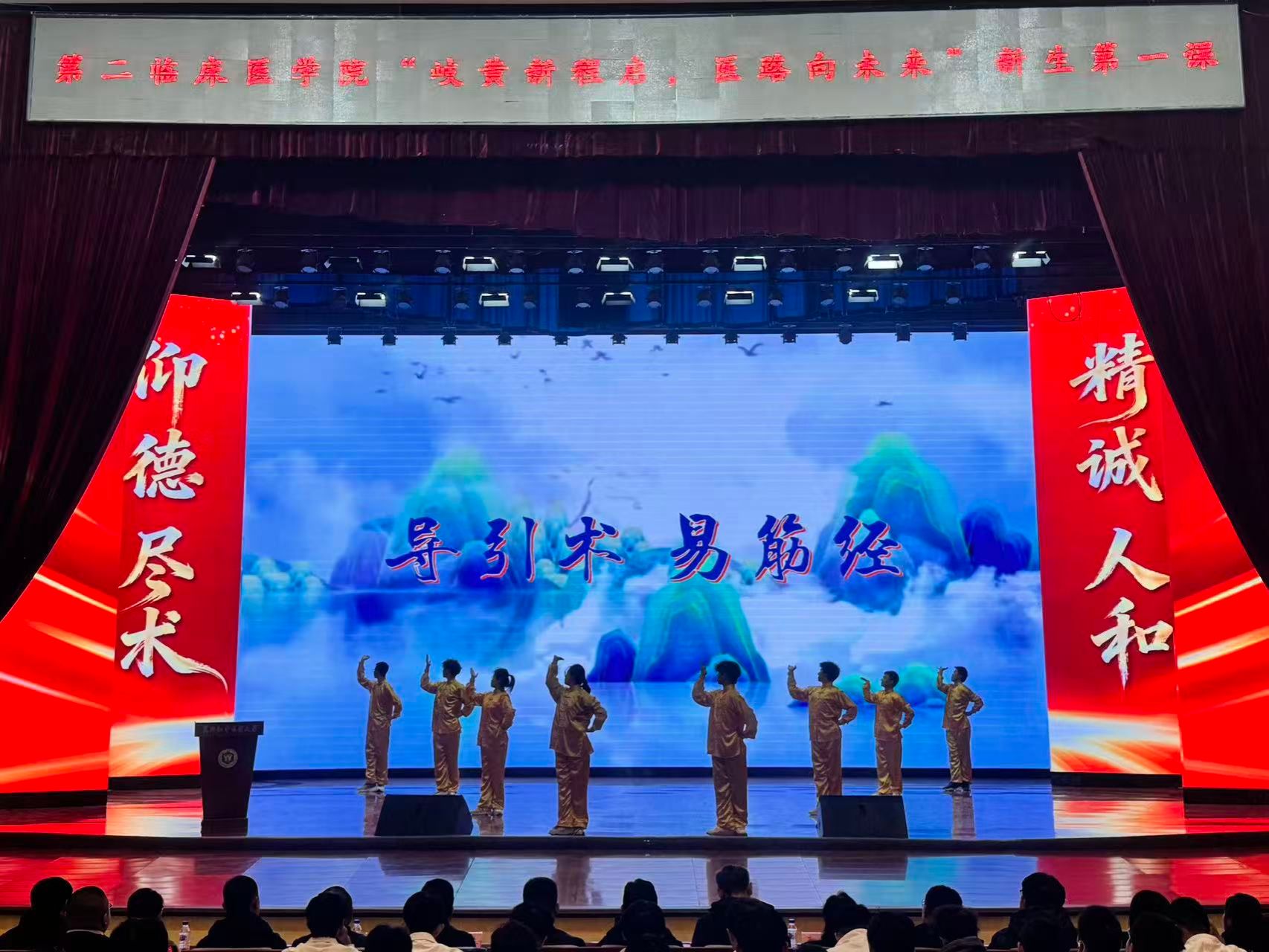 活动在《易筋经》表演中拉开序幕,并播放了学院宣传片。针灸学科带头人王顺教授、康复治疗学专业负责人王艳教授、医学影像技术专业负责人郭祥发主任及医学技术学科带头人朱路文教授分别围绕第二临床医学院本科五个专业,系统阐述了针灸、康复、影像及医学技术学科的核心内涵与发展前景,并从精读经典与临床实践结合、培养整体思维与人文关怀、夯实数理基础、构建学科体系与激发创新潜能四个维度,为新生描绘出清晰的专业图谱与发展路径。