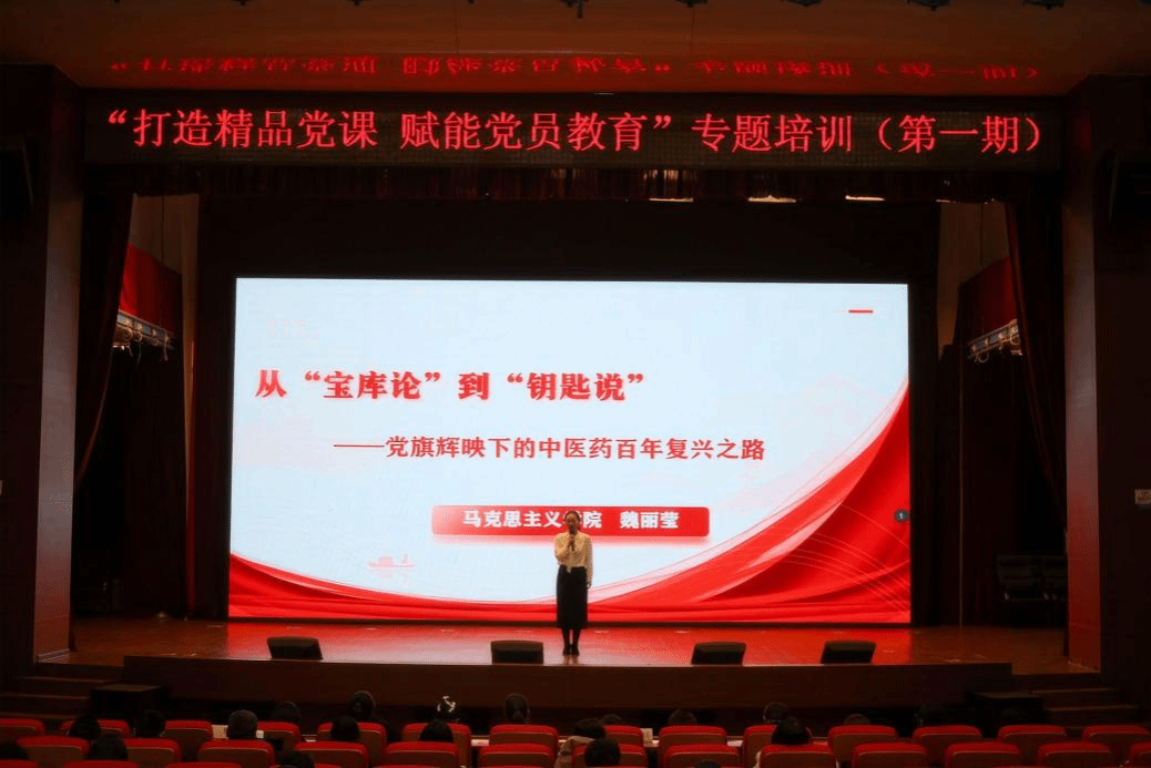 华体会平台(中国)马克思主义学院教师第一党支部青年教师党员魏丽莹讲授微党课《从“宝库论”到“钥匙说”——党旗辉映下的中医药百年复兴之路》