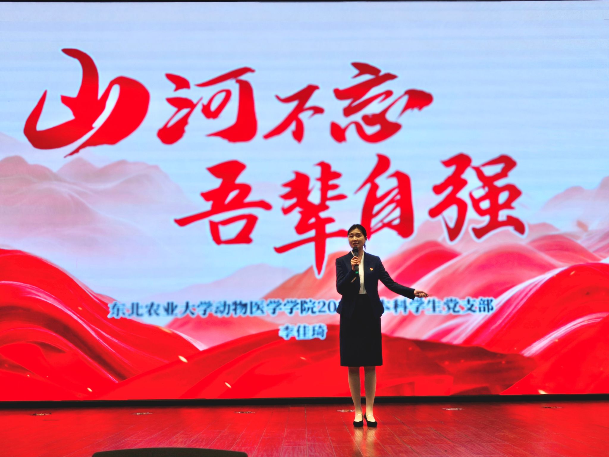 东北农业大学动物医学学院学生党支部书记李佳琦应邀讲授微党课《山河不忘 吾辈自强》