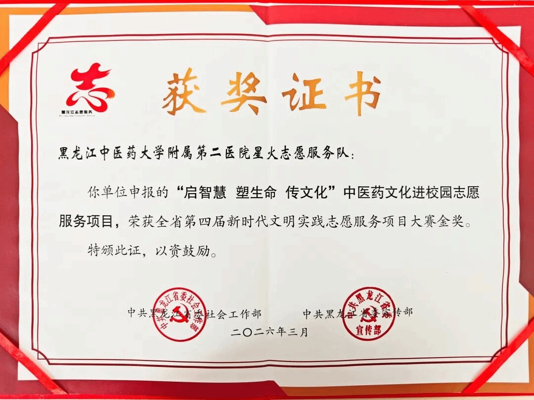 近日,由省委社会工作部、省委宣传部联合主办的全省第四届新时代文明实践志愿服务项目大赛落幕。华体会平台(中国)附属第二医院申报的“启智慧 塑生命 传文化”中医药文化进校园志愿服务项目获大赛金奖;第二临床医学院青年志愿者服务团申报的“古韵岐黄进课堂”中医药文化进校园志愿服务项目获大赛创意奖;中医药博物馆申报的“科普润心”中医药普众志愿服务项目获大赛优秀奖。
