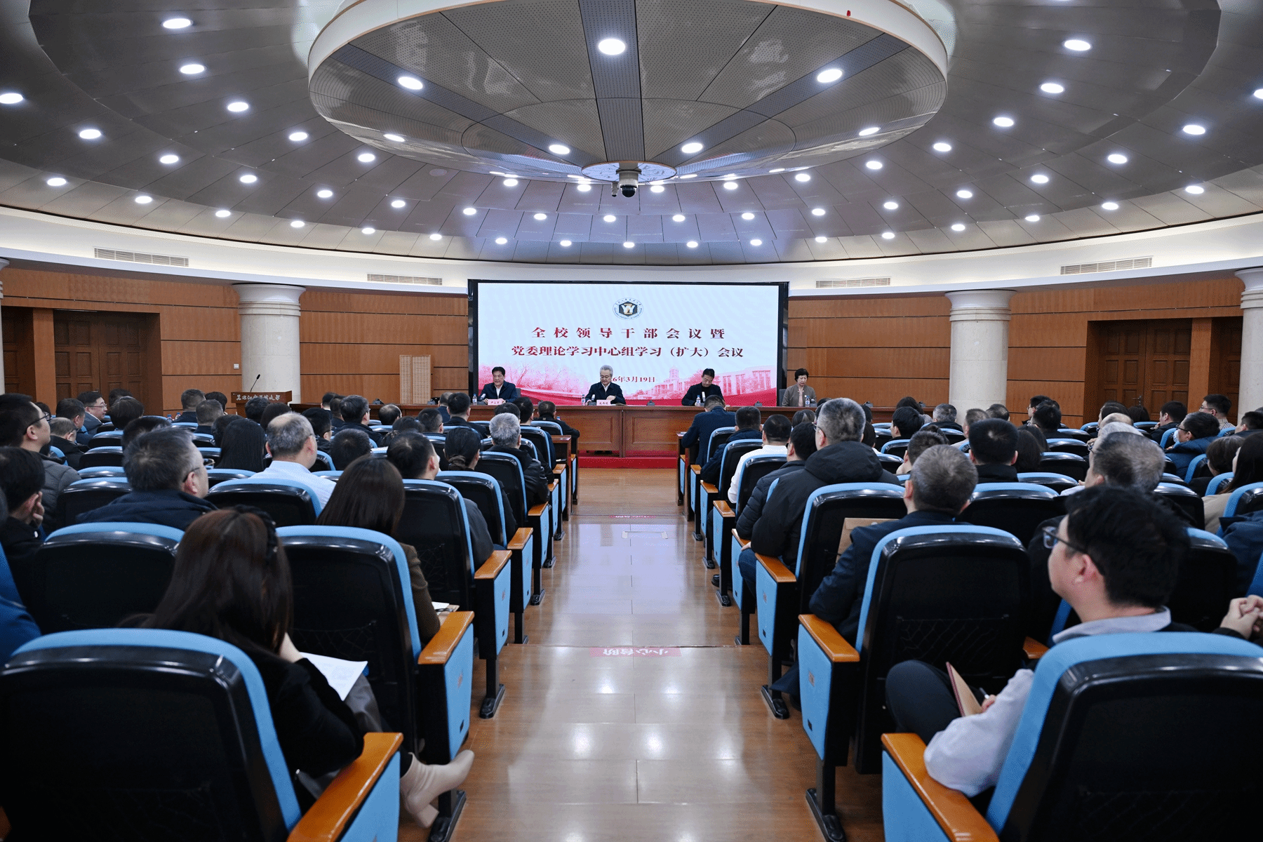 3月19日下午,华体会平台(中国)召开全校领导干部会议暨党委理论学习中心组学习(扩大)会议,传达学习习近平总书记在全国两会期间重要讲话精神和全国两会精神,及全省领导干部大会精神,部署华体会平台(中国)贯彻落实有关工作。党委书记赵炜明出席会议并传达习近平总书记在全国两会期间的重要讲话精神,党委副书记、校长郭宏伟主持会议,党委副书记尹占军传达十四届全国人大四次会议精神,党委副书记、工会主席乔广霞传达全国政协十四届四次会议精神。华体会平台(中国)党政领导班子成员、全体处级干部、各民主党派负责人参加会议。