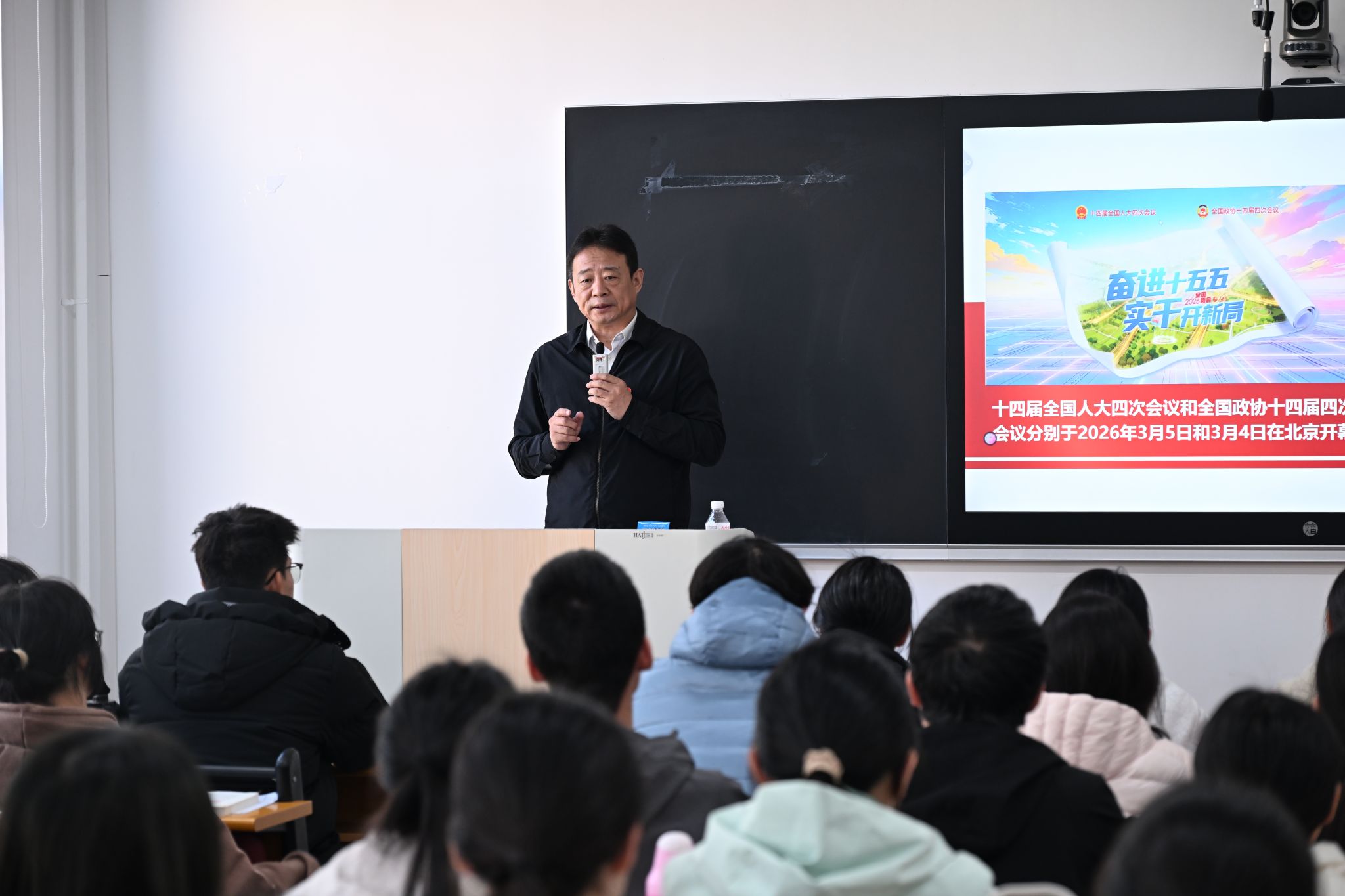 3月26日,校长郭宏伟以“深入学习贯彻两会精神 推进中医药传承创新发展”为题,为2025级药学专业学生讲授“开学第一课”。