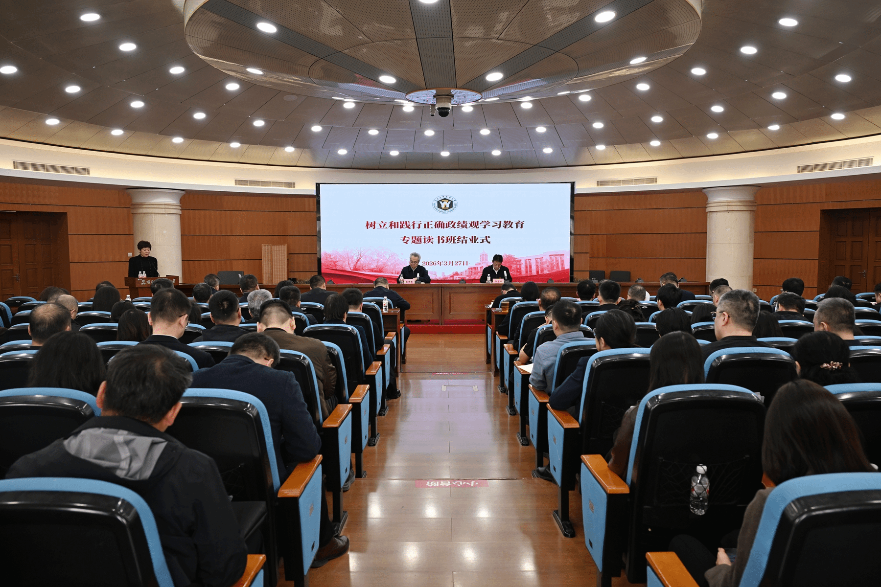 3月27日,华体会平台(中国)树立和践行正确政绩观学习教育专题读书班结业。校党委书记赵炜明出席结业式并做总结讲话,校长、党委副书记郭宏伟主持结业式。全校处级以上领导班子成员参加结业式,机关全体处级干部,处级辅导员、组织员列席结业式。