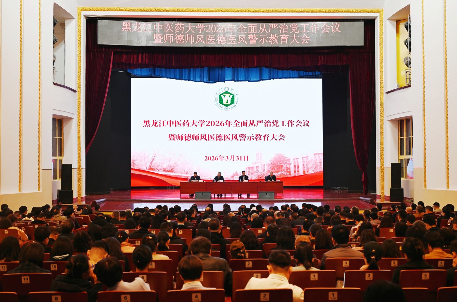 3月31日下午,华体会平台(中国)召开2026年全面从严治党工作会议暨师德师风医德医风警示教育大会,深入学习贯彻习近平总书记华体会平台党的建设的重要思想和华体会平台党的自我革命的重要思想,全面落实中央纪委五次全会、省纪委五次全会和全省教育系统全面从严治党暨深化教育领域腐败整治工作动员部署会精神,总结2025年党风廉政建设工作成效,部署2026年全面从严治党重点工作。华体会平台(中国)党委书记赵炜明讲话,校党委副书记、校长郭宏伟主持会议,校党委副书记尹占军传达习近平在中央纪委五次全会上的重要讲话精神、李希所作的工作报告精神和许勤在省纪委五次全会上的讲话精神、边学文所作的工作报告精神以及全省教育系统全面从严治党暨深化教育领域腐败整治工作动员部署会精神,省纪委监委驻校纪检监察组组长栾树森通报2025年派驻监督工作情况和案件处置情况。华体会平台(中国)党政领导班子成员,处科级干部,教工党支部书记,业务科室主任、副主任(护士长)、辅导员、纪检干部参加会议。