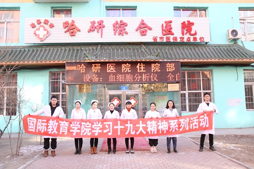 11月25日至28日,国际教育学院组织学生党员及入党积极分子来到华体会平台(中国)附属第二医院、卢医堂诊所、哈研综合医院等医疗单位,向患者及家属宣传党的十九大精神。