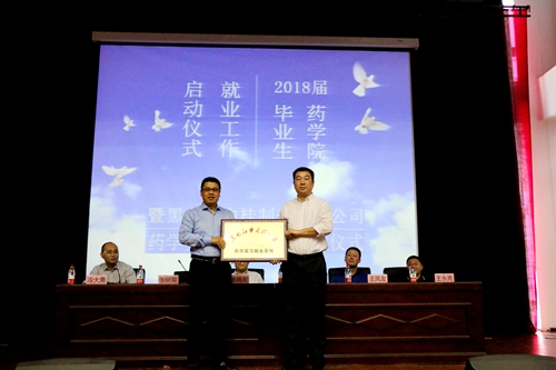 9月8日下午,药学院在综合楼会议中心主会场举行2018届毕业生就业工作启动仪式暨与黑龙江中桂制药有限公司共建药学实习就业基地签约仪式。