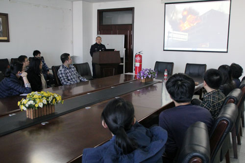 在讲座中,陈永吉教官结合近年来各地发生的火灾真实案例,为与会的教师及该院部分研究生代表们就火灾的发生原因,日常火灾预防注意事项,以及不同情况下的火灾逃生方法,尤其是针对高层建筑和学生寝室等人员密集的公共场所的逃生自救知识等进行了细致的讲解,并介绍了灭火器的种类和使用方法。