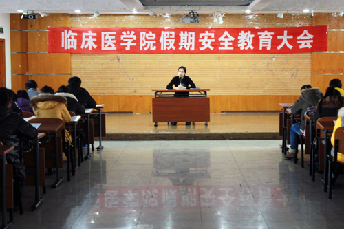 为进一步增强同学们的安全意识,确保大家度过一个安全、快乐、文明、和谐的寒假,1月5日至7日,临床医学院分别对各专业学生进行假期安全主题教育。