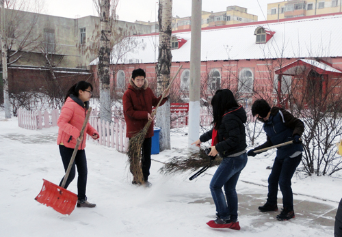 同学们在清理积雪