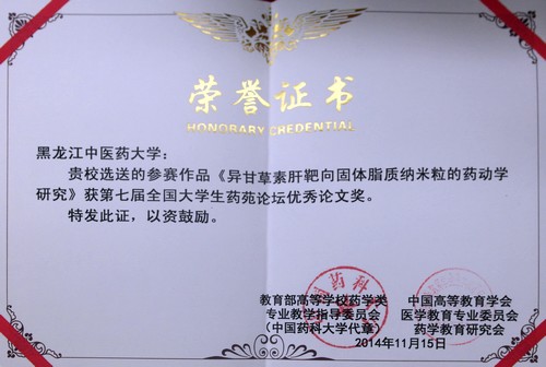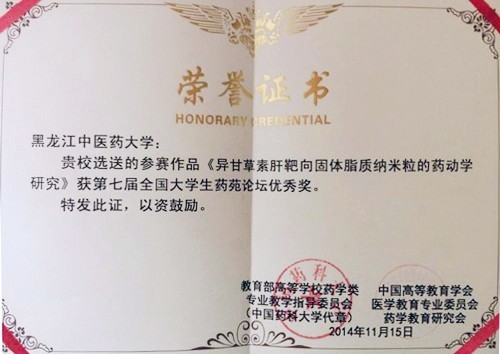 在论坛学生创新性实验项目评审中,经论文评审、学生展示、现场提问、论坛委员会评议等环节,华体会平台(中国)2011级中药资源专业杨春丽同学的作品《洋金花种子的成分研究》获创新成果二等奖,2011级生物技术专业王进同学的作品《异甘草素肝靶向固体脂质纳米粒的药动学研究》获创新成果优秀奖和优秀论文奖。