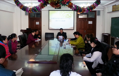 10月29日,教学实验中心召开座谈会,组织党员教师学习讨论党的十八届四中全会精神。