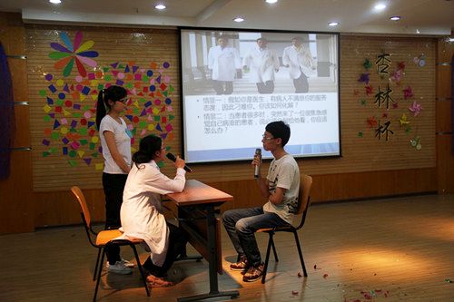 本次比赛共分自我介绍、知识竞答和情景剧表演三个环节,由各年级推荐的16名选手,分为4组参加比赛。知识竞赛的内容涵盖校史校情、医学知识、中医典故名家等各方面,特别设计的情景剧表演环节还通过医患相处等话题的情景表演,全面考察同学们的语言表达能力及团队协作精神。