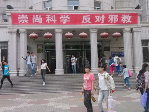 6月11日,药学院组织2013级学生观看了“珍爱生命,远离邪教”警示教育片,学生代表面向全体同学发出“识别邪教,信念坚定;面对邪教,敢于斗争;崇尚科学,远离邪教”的倡议。一名同学在活动现场深有感触地说:“这次活动向我们生动展示了邪教组织的荒谬性、欺骗性和危害性,我们不仅应该远离邪教诱惑,更应该积极参与到反对邪教的宣传工作中来。”
